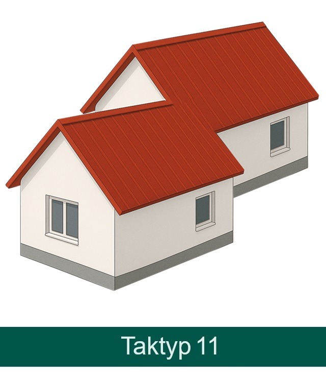 Taktyp 30 ansluter normalt mot vägg vid C och F eller så är taket helt fristående. Mått G avser hur lång ränndalen är vid övergången mellan de två taken.