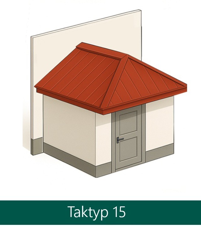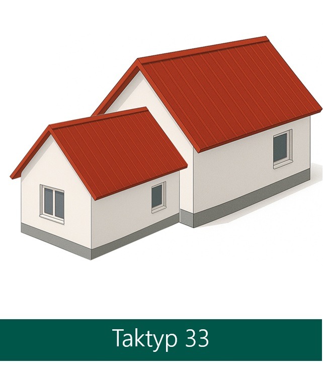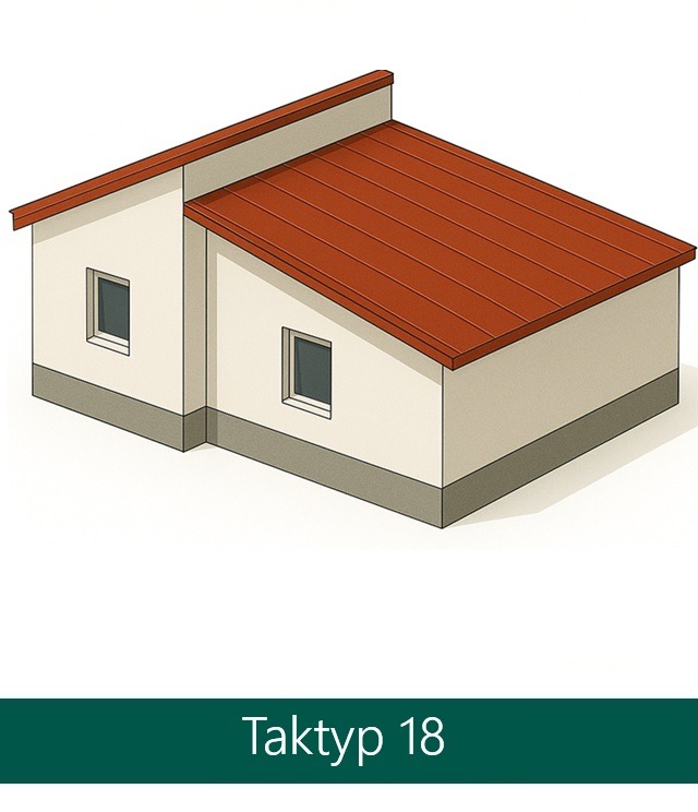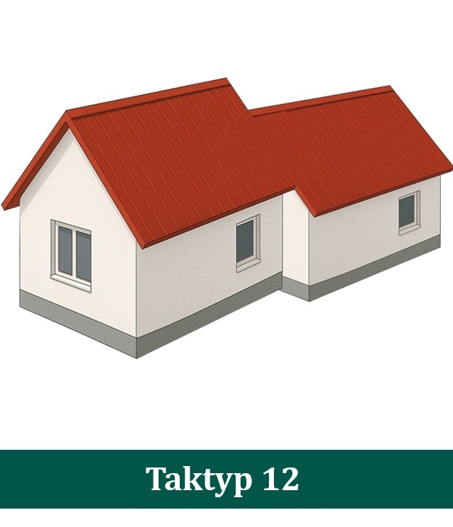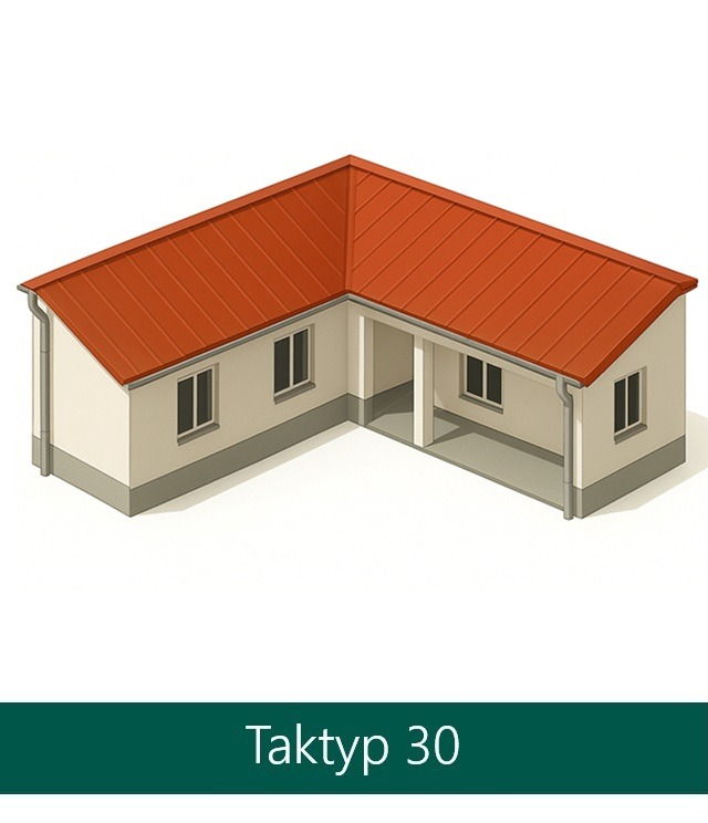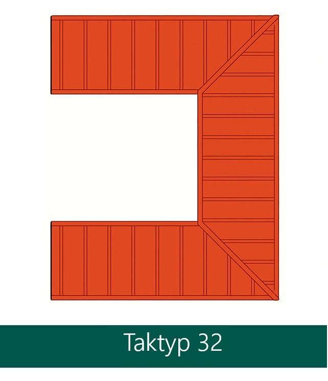 Taktyp 30 ansluter normalt mot vägg vid C och F eller så är taket helt fristående. Mått G avser hur lång ränndalen är vid övergången mellan de två taken.