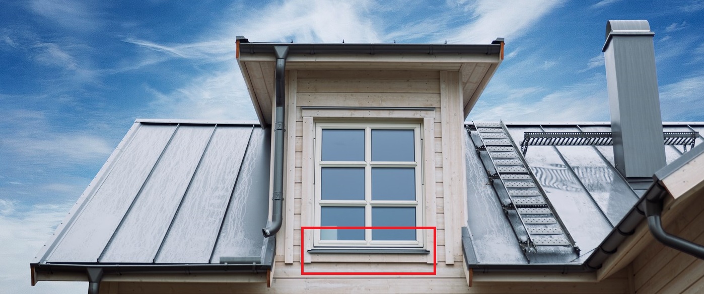 Bilden visar ett exempel på hur underblecket har monterats vid ett fönster.
