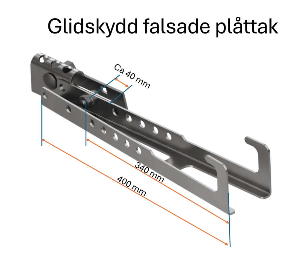 Glidskydd falsat tak, glidskydd falsade tak, steg-glid-skydd tak, takstege glidskydd falsat tak.