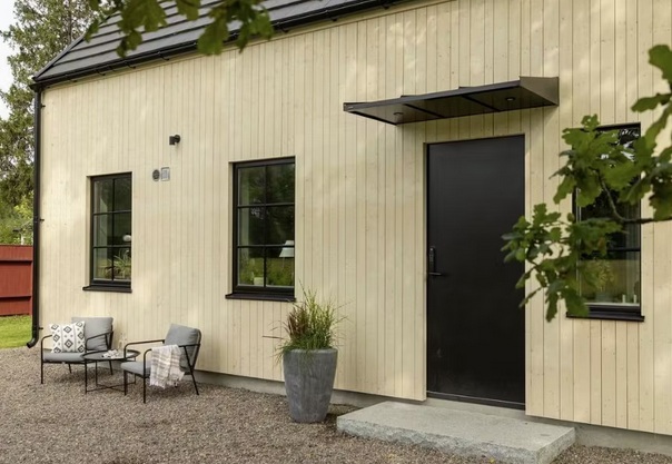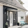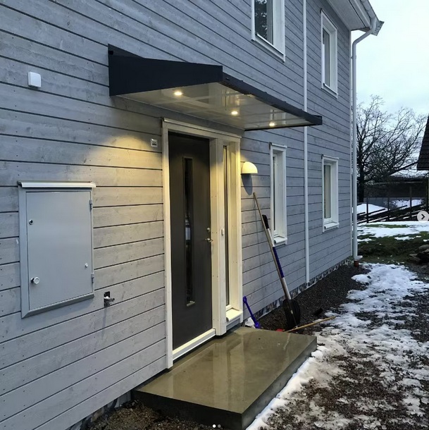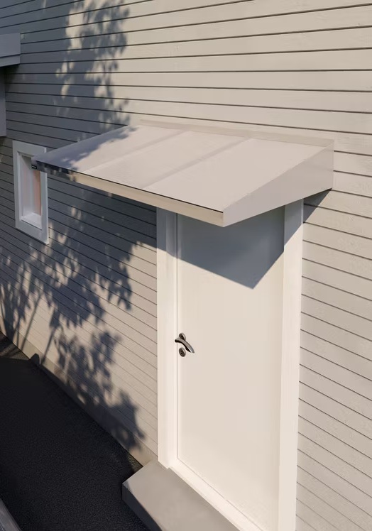 Takmodellen finns i två olika djup: cirka 955 mm för en mer nätt lösning och 1155 mm för dig som vill ha extra skydd mot regn och snö framför dörren. Det gör det enkelt att anpassa taket efter fasad, utrymme och hur utsatt entrén är för väder.