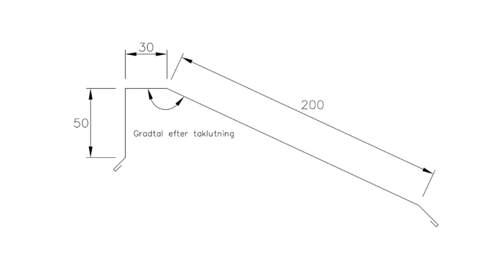 Pulpetnock Modern/Trend 326238V har en täckande längd på 2000 mm. Du mäter helt enkelt längden på pulpettakets högsta kant och delar den på 2,0 m för att få fram antalet nocklängder. Lägg gärna till lite marginal för eventuella skarvar och kap vid gavlar, och följ alltid Plannjas montageråd för överlappning och infästning.
