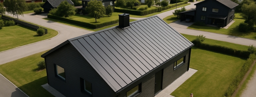 • Klicktak / bandtäckningsliknande profiler – stilrent, modernt, passar villor och funkishus.
