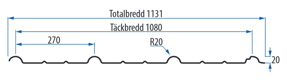 Täckande bredd: 1080 mm